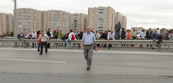 Basın açıklamasından sonra grubun önüne geçen Mahmut Tanal, yürümeye başladı. Ancak daha yolun başında hangi yöne gideceklerini şaşıran Tanal'a eylemciler yol göstermeye çalıştı. Bir süre sonra Ümraniye yönüne gitmeye karar veren Mahmut Tanal, yoldaki trafik polisini durdurarak yolu kesmesini istedi. Daha sonra demir bariyerleri aşarak karşıya geçen Tanal'ın peşine takılan gruptaki kadın ve yaşlılar zor anlar yaşadı. Bariyerleri geçmek için büyük çaba gösteren eylemcilerden bazıları yerlere sürünerek engeli aştı. Bazıları da birbirlerini yardım ederek yolun karşısına geçti. Eylemcilerle bir süre daha yürüyen CHP milletvekileri daha sonra ayrıldı