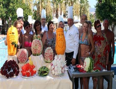 Karpuz ile kabakları oyarak insan ve hayvan figürleri yapan aşçıları, oteldeki özellikle yabancı turistler şaşkınlık ve ilgi içerisinde izledi. Turistler, oyularak üzerlerine resim yapılmış karpuz ve kabakları görüntülemek için birbirleriyle yarışırken, bazılarının dekorların önünde hatıra fotoğrafı çektirdiği görüldü.