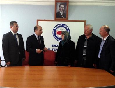 Erzincan Sağlık-Sen Şube Başkanı Halil İbrahim İçoğlu konuşmasının ardından merhum Yusuf Uğur’un ailesine çeki takdim etti.