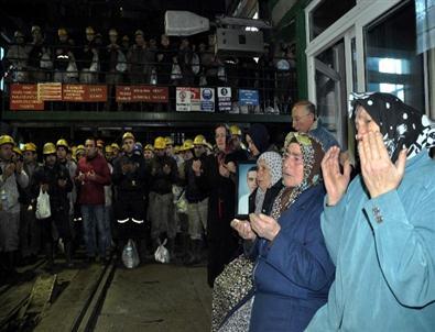 Törenin sonunda aileler evlerinin yolunu tutarken, mesaiye başlayan madenciler de kafese binerek yerin metrelerce altına indi.