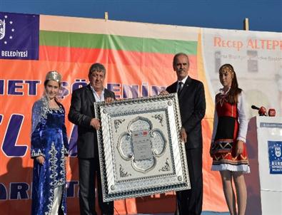 İlçe stadyumunda düzenlenen tören alanına giren Başkan Altepe ve beraberindeki girişte büyük bir coşku ile karşılardı. Eski Cuma eski Valisi Emel Rasimova’nın da katıldığı törende alanı dolduran Omurtaglılara seslenen Başkan Altepe, Osmangazi Belediye Başkanlığı döneminde kardeş kent oldukları Omurtag’da bulunmaktan mutluluk duyduğunu belirtti.