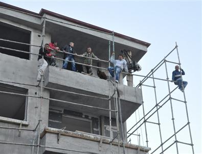 Olay, Büyük Bölcek Mahallesi Büyük Bölcek Caddesi üzerinde bulunan 5 katlı inşaatta meydana geldi. Edinilen bilgiye göre, İş Güvenliği Yasası çerçevesinde iskelenin uygun olmadığı gerekçesi ile görevliler inşaatı mühürlemeye geldi. İnşaatın işçileri ise ekmeklerinden olacakları gerekçesi ile inşaatın 5’inci katına çıkarak intihar girişiminde bulundu. İnşaat işçilerinin intihar girişimi nedeniyle polise, 112 ve itfaiye ekiplerine haber verildi.