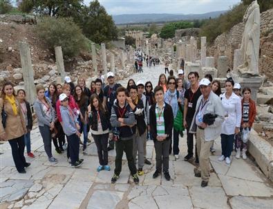 Meryem Ana Evi ziyaretinin ardından, kuruluşu Cilalı Taş Devri MÖ 6000 yıllarına dayanan Efes Antik Şehri’ne geçen kafile, muazzam tarihi şehir karşısında büyülendi. Rehber eşliğinde gerçekleşen ziyaretlerde hem tarihi dokusu hem de yaşanmış olaylar hakkında bilgiler alan konuk ekip, adım adım gezdikleri Efes Antik şehrinde geçmişi adeta yeniden yaşadılar. Tümü mermerden yapılmış ilk kent olan Efes’te, dünyanın yedi harikasından biri olan Artemis Tapınağı’nın kalıntıları, Selsus Kütüphanesi, Senato ve Büyük Tiyatro başta olmak üzere birçok tarihi eseri yerinde görüp gezen konuklar günün anısına hatıra fotoğrafı çektirdiler. Gördükleri tarihi doku karşısında heyecan ve mutluluklarını gizleyemeyen konuklar memnuniyetlerini dile getirirken, gerçekleştirilen bu projenin ne kadar önemli ve de gerekli olduğunu belirttiler.