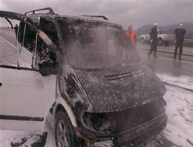 Seyir Halindeki Minibüs Alev Alev Yandı