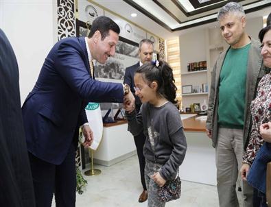 Bayramlaşma programında Başkan Tok'un elini öpen minikler Başkan'dan harçlıklarını aldı.