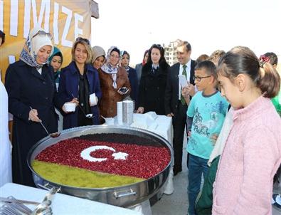 Aşure dağıtımına Büyükşehir Belediye Başkanı Mehmet Özhaseki'nin eşi Neşe Özhaseki ve AK Parti Kadın Kolları Başkanı Gülcan Cengiz de katıldı.