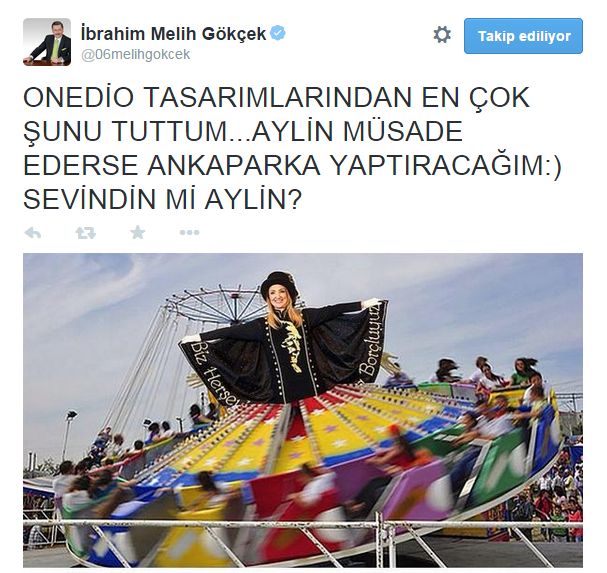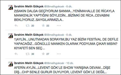 Gökçek, attığı tweette 'Aferin Aylin, Levent Gök'le show yarışına devam. CHP seninle gurur duyuyor' yazdı.