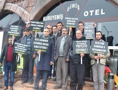 Denizli’nin Serinhisar ilçesinde esnaf, yapılan refüjden dolayı işlerinin azaldığını belirterek eylem yaptı.