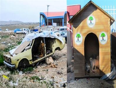 Şehitkamil Belediyesi Zabıta Müdürlüğü ekipleri, hurda bir araç içerisinde yuva yapmış anne köpek ile 6 yavrusunu soğukla karşı karşıya bırakmamak için yeni bir kulübe yaptı.