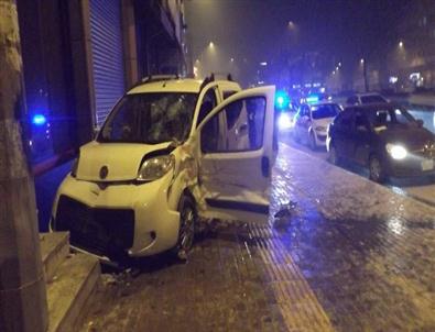Bursa’da Hızını Alamayan Otomobil Kaldırıma Çıkıp Park Halindeki Araca Çarptı
