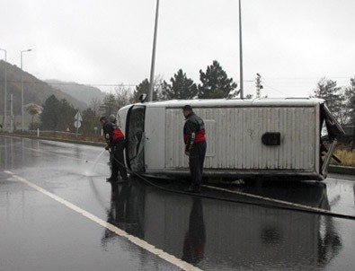 Gaziantep'te, fabrika işçilerini taşıyan servis midibüsünün iddiaya göre aşırı hız nedeniyle devrilmesi sonucu meydana gelen kazada sürücü 58 yaşındaki Halil Kılıçoğlu öldü, 13 işçi de yaralandı.