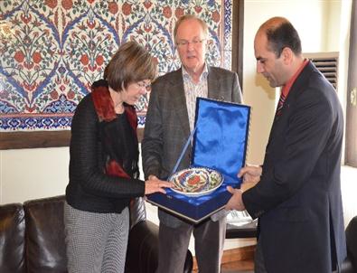 Konukları ağırlamaktan duyduğu memnuniyeti dile getiren İznik Kaymakamı Hüseyin Karameşe, İznik'in tarihi, turizm ve kültürel potansiyeli hakkında Almanya Federal Cumhuriyeti Ankara Büyükelçisi Eberhard Polh ve eşine bilgi verdi.