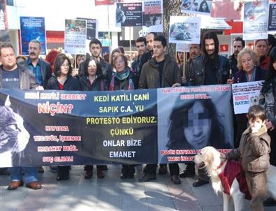 Grup adına basın açıklamasını Isparta Veterinerler Odası Sekreteri Abdullah Koyun yaptı. Eskişehir’de bir caninin evindeki kediyi bıçakla öldürdüğünü ve bunu videoya aldırttığını belirten Koyun, şunları söyledi: “Bu cani bir ceza almadan serbest bırakılmıştır. Binlerce kişi bu vahşeti kınamak ve tek ses olarak ‘Kedi katili serbest. Niçin?’ diye sormak için bir araya geldi. Bir katil nasıl serbest kalır? Çünkü, hayvana işkence vahşet maalesef, tıpkı yere tükürmek veya yasak yerde sigara içmek gibi basit eylemlerle aynı çizgide değerlendirilmiş ve kabahat olarak görülmüştür. Dolayısı ile hakim ve savcı, hayvanlara işkence uygulayanlara ceza verememektedir. Oysa hayvan öldürmekle insan öldürmek arası sadece bir adımdır. Bütün katillerin toplum düşmanlarının mazisinde hayvanlara yapılan işkence vardır. Katiller öldürmeyi hayvanları öldürerek öğrenmişlerdir.”