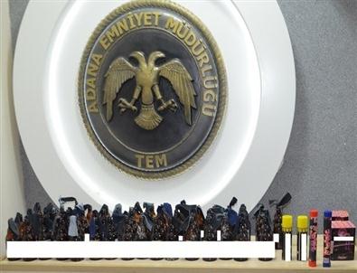 Adana Emniyet Müdürlüğü tarafından bir eve yapılan operasyonda 66 molotof kokteyli, 2 havai fişek, 2 gök bombası diye tabir edilen havai fişek ele geçirildi.