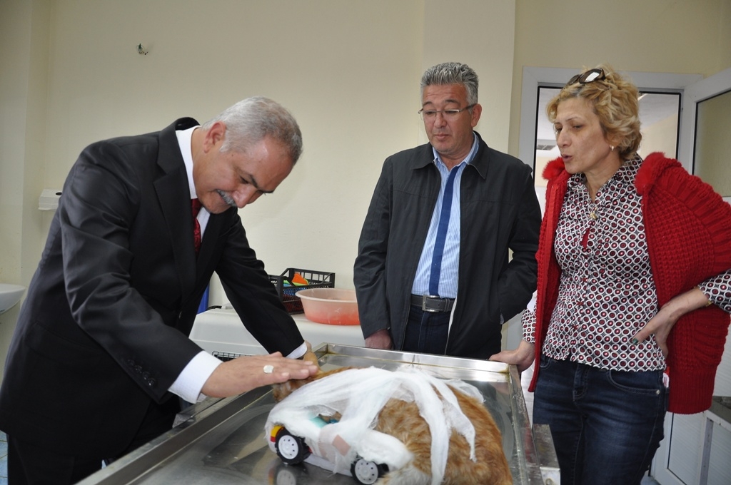 Yaralı kedinin bu konuda duyarlı olan vatandaşlar tarafından bulunup, HAYTAP yetkililerine ulaştırıldığını ve konunun kendilerine intikal ettirildiğini söyleyen Kadir Kara, "Belediyemiz veteriner hekimleri tarafından iki ön bacağı kopmuş olan bu kedimize üç saat süren bir operasyonla cerrahi müdahale yapıldı ve onun neticesinde bu kedimizin acısı kısmen de olsa dindirilmeye çalışıldı. Basit bir şekilde tekerlek sistemi yaparak yaşamını idame ettirebilmesi noktasında bir müdahalede bulunuldu. Önümüzdeki günler içerisinde bu konuda tekerlekli bacak anlamına gelen bir ortez getirttireceğiz. Bu sayede kedimiz yaşamını ortez bacak sayesinde idame ettirecek halde olacak. Bu konuda öncelikle bu müessif hadiseden dolayı üzüntülerimi ifade etmek istiyorum. Yerel yöneticiler olarak bu şehirde nefes alan her canlıdan sorumluyuz. Bu bağlamda da bu kedimizin yaşamını devam ettirebilmesi için elimizden gelen tüm gayreti göstermeye çaba sarf edeceğiz" dedi.