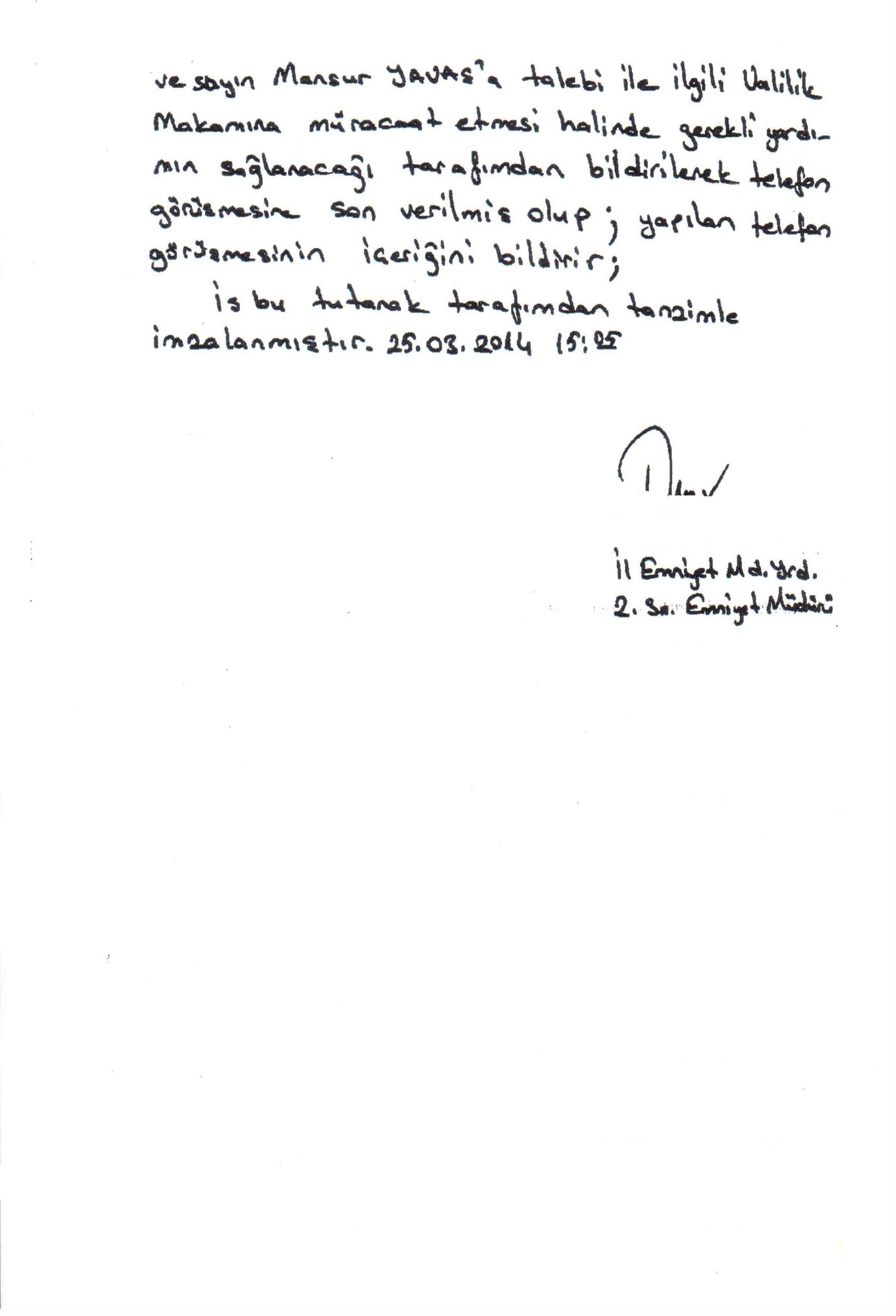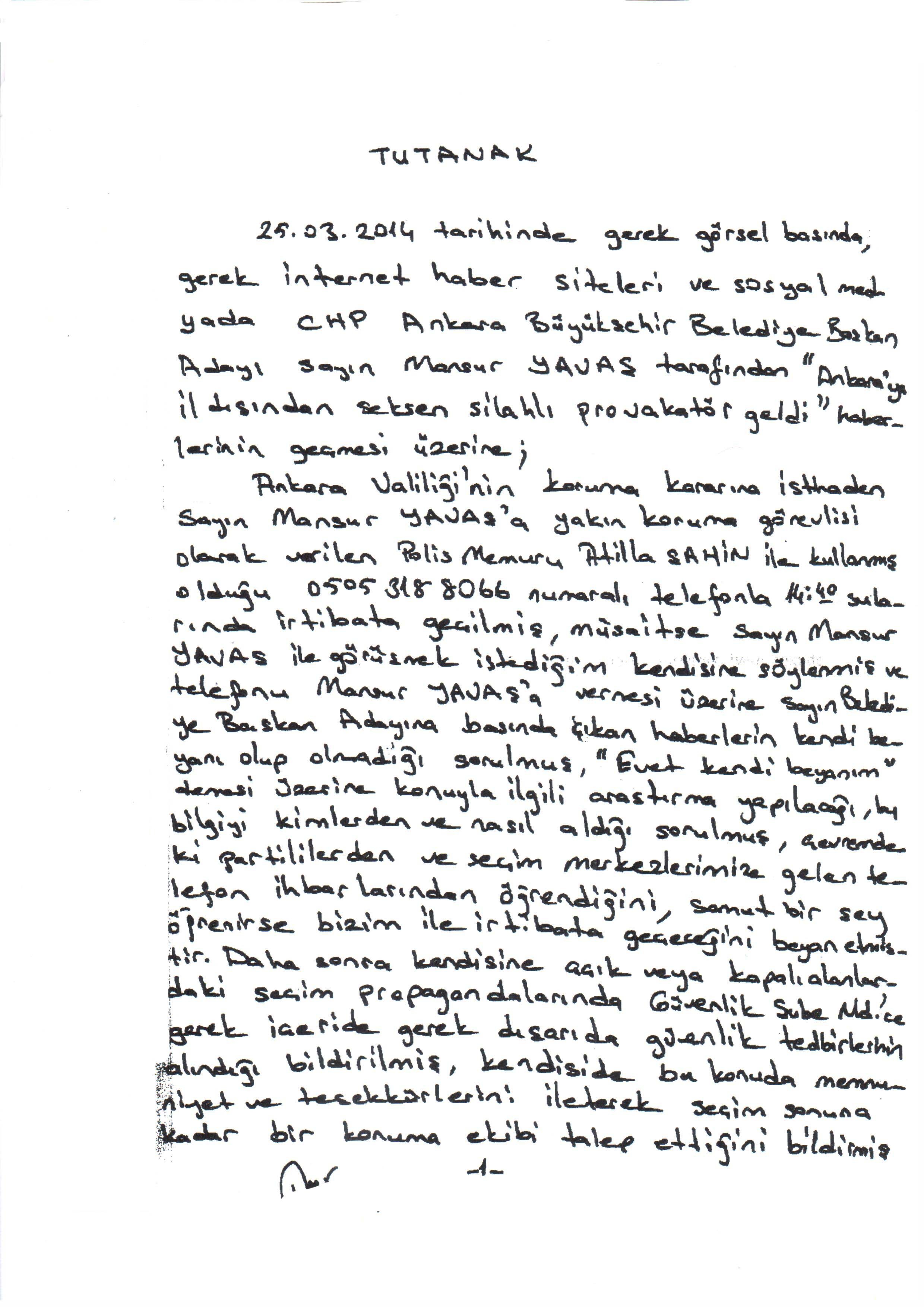 Emniyetin açıklamasında, Mansur Yavaş ile yapılan görüşme tutanağına da yer verildi.