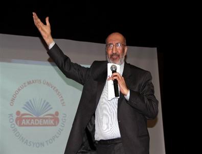 OMÜ Akademik Koordinasyon Kulübü Danışmanı Yrd. Doç. Dr. Fahri Birinci’nin açılış konuşmasından sonra konferans veren Gazeteci Yazar Abdurrahman Dilipak, “Bugün Türkiye her istediğini yapacak bir güçte değil. Ama bizim istemediğimiz bir şeyin yapılması artık mümkün değil. Biz kime dokunursak yenidünyanın lideri o olacak. Şili ile işbirliği yaparsak, Şili, Hindistan ile işbirliği yaparsak Hindistan, Avrupa ile işbirliği yaparsak Avrupa, Amerika ile işbirliği yaparsak Amerika olacak. Hiç kimse bizi kaybetmeyi göze alamaz. Onun için bu topraklardaki iktidar savaşı çok keskin yaşanıyor. Siz bir buçuk milyar Müslüman’ın ümidisiniz” diye konuştu.