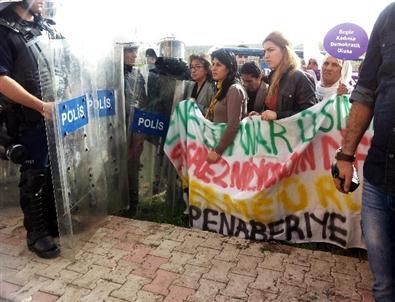 Aralarında Nusaybin Belediye başkan Ayşe gökkan, BDP Nusaybin Belediye Eşbaşkan Ayayı Sara Kaya, BDP İlçe Eşbakanı Zinet Algan'ın da bulunduğu bir grup kadın Mitanni Kültür Merkezi'nde bir araya geldi. Burada yürüyüşe geçen kadınlar mayınlı bölgeye geldi. Güvenlik güçleri kadınların mayınlı alana girmesine izin vermedi. Polisin kendilerini engellediklerini belirten kadınlar caddeyi trafiğe katarak polisi protesto etti. Burada oturma eylemi başlatan kadınlar sınır tellerine pankart asmak istedi
