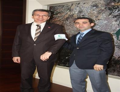 Ziyarette Yeşilay Denizli Şube Başkanı Ümit Bayagut, Başkan Yardımcısı Ali Değirmenci'nin koluna Yeşilay pazubandı takarak yapılan projeler hakkında bilgi verdi.