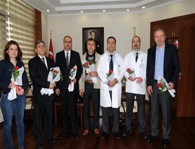 Özel Sani Konukoğlu Hastanesi hekimlerini de ziyaret eden oda yöneticileri, hekimlerin tıp bayramlarını kutlayarak, karanfil takdim etti.