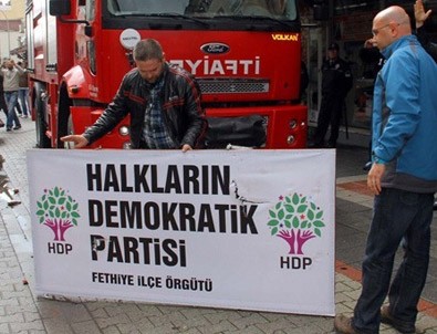 Fethiye'de HDP seçim bürosunun açılışında gerginlik yaşandı. Polis barikatlarını yıkarak açılış yapılan binaya girmek isteyen protestoculara müdahale edildi. Gerginliğin artmaması için binadaki HDP tabelası söküldü.