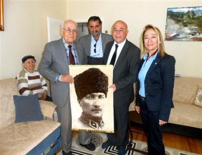 Söke Belediyesi, Köy Enstitüsünde görev yapmış olan emekli öğretmen Ahmet Yıldırım’ı evinde ziyaret ederek Atatürk motifli bir halı ve çiçek hediye etti.