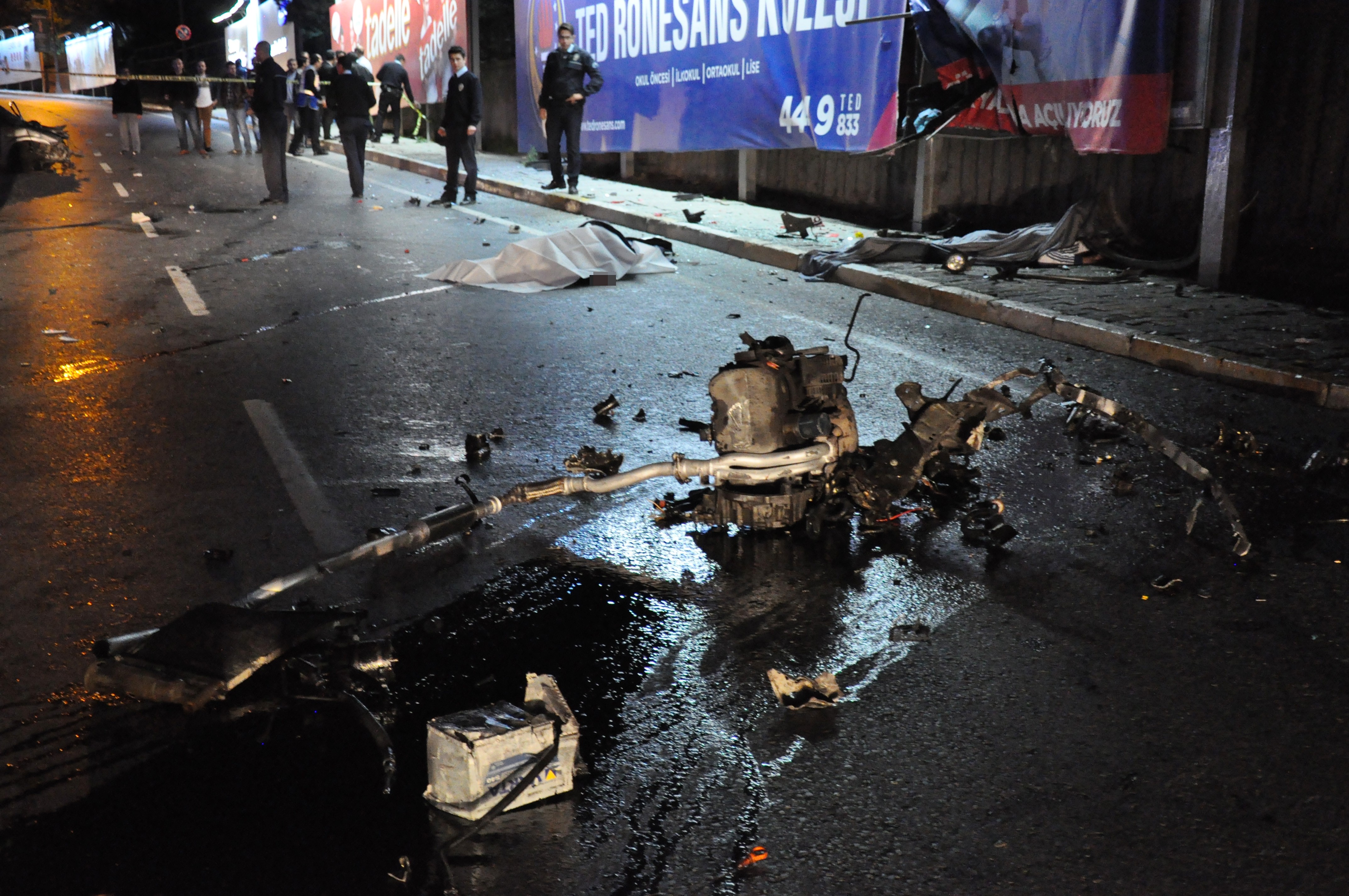 Sarıyer'de kontrolden çıkan otomobilin direğe çarpması sonucu 2 kişi hayatını kaybetti. Kazada aracın motorunun dışarı fırlaması dikkat çekti.
