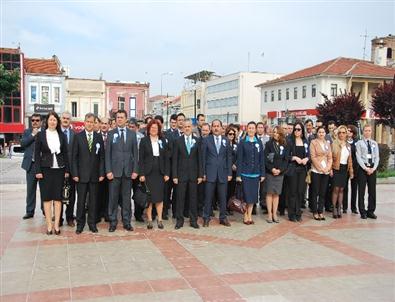 Atatürk Anıtında düzenlenen tören, Edirne Belediyesi Bandosu eşliğinde bir dakikalık saygı duruşunda bulunulmasının ardından İstiklal Marşı'nın okunması ile başladı.