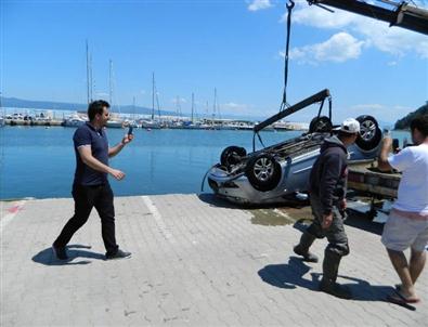 El Freni Çekilmeyi Unutulan Araç Denize Düştü