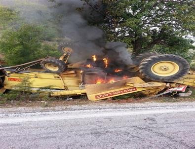 Edinilen bilgiye göre, Burdur'un Bucak nüfusuna kayıtlı biçerdöver sürücüsü Veli Sarıcan, D-400 karayolu üzerinde Antalya-İçel yönüne seyir halindeyken, Anamur ilçesi Ucarı mevkisinde, yürütücü kayışının kopması sonucu kontrolü kaybedilen biçerdöver devrildi. Biçerdöverin motor kısmı devrilme sonucu alev alarak yanmaya başladı.