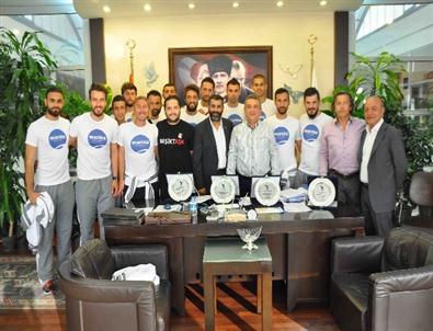 Beşiktaş Plaj Futbol Takımı’na Kuşadası Belediye Başkanı Özer Kayalı’yı ziyaretleri sırasında Genel Menajeri Selman Alıcıoğlugil, Belediye Meclis Üyesi Bilgehan Algan, Marina Otel Yönetim Kurulu Başkanı Hamdi Göçer ve Kuşadası Beşiktaşlılar Derneği Başkanı Abdullah Çakmak eşlik etti. Genel Menejer Aılıcıoğlugil, kamp süresince sağladığı kaktı ve gösterdiği ilgi nedeniyle Kuşadası Belediye Başkanı Özer Kayalı’ya teşekkür etti ve plaket verdi. Başkan Kayalı’da Beşiktaş plaj futbolu takımını Kuşadası’nda ağırlamaktan mutlu olduklarını söyledi.