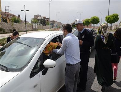 Üniversite öğrencileri, 'Topluma Hizmet Dersi' kapsamında, Trafik Haftası nedeniyle Trafik Polisleri ile birlikte 'Emniyet Kemeri Uygulaması' yaparak, sürücülere kayısı ve şeker ikram etti.