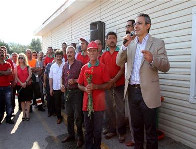 Tüm işçilere karanfil dağıtan Başkan Akpınar, sendikal örgütlenmenin her zaman yanında olacaklarını ve kendisinin de işçilerle birlikte mücadele edeceğini söyledi.