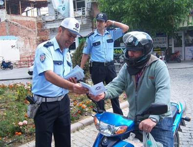 Kula İlçe Emniyet Müdürlüğü Trafik Tescil ve Denetleme Büro Amirliği ekipleri Yunus Emre Caddesi ile Demirciler Caddesi'nin kesiştiği alanda ve İlçe Pazar yerinde kaskın önemini anlatan el broşürleri dağıttı.