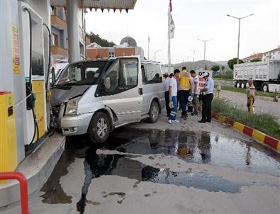 Ankara’da Kontrolden Çıkan Minibüs Akaryakıt İstasyonuna Daldı