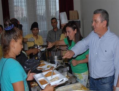 Erken saatlerde vatandaşların evlerine götürmek için kapla aldığı yemekler, daha sonra düğün salonuna gelen vatandaşlara veriliyor. Günde bin kişiye verilen iftar yemeği ilk gün hayırsever Ertuğrul Acun’un katkılarıyla gerçekleşti. İftar yemeklerinin ikincisini ise Belediye Meclis üyeleri verdi. Belediye Başkanı Özer Kayalı ile meclis üyelerinin katıldığı iftar yemeğinde, başkan Özer Kayalı, eşi Nil kayalı ile birlikte yemek dağıttı.