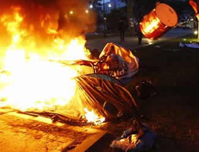 Sözleşmeli zabıta personeli Murat Yüce (36): Göstericiler müdahaleyle dağılınca biz de çadırları toplamak için girdik. Dördüncü seferimi yaparken, emniyet müdür yardımcısı Ramazan Bey'in, amirimiz Murat Sarı'ya, "Arkadaşların uğraşmasına gerek yok. Yakın gitsin" dediğini duydum. Bunun üzerine biz de polislerle birlikte, çadırları ateşe atmaya başladık.