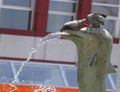Samsun'da hava sıcaklığının mevsim normallerinin üzerinde seyretmesi, insanların yanı sıra hayvanları da etkiliyor. Sıcak havadan bunalan güvercinlerin Cumhuriyet Meydanı'ndaki süs havuzundaki yunus balığı heykelinin ağzından fışkıran suyu içme mücadelesi ilginç görüntü oluşturuyor.