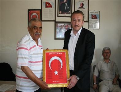 Parti yönetim kurulu üyeleriyle birlikte Şehit Aileleri ve Terör Mağdurları Derneği’ni ziyaret eden AK Parti Sungurlu İlçe Başkanı İlyas Özkan, dernek başkanı İdris Yazdıç’a Türk bayrağı işlemeli tablo hediye etti.