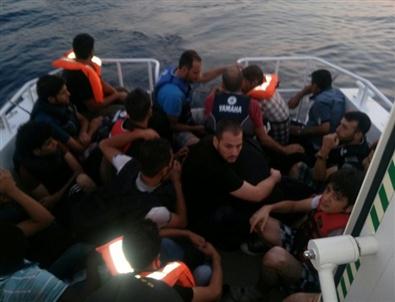 Aydın'ın Didim ilçesi Eşek adası kuzeyinde lastik bot içerisinde Suriye uyruklu 21 kişi yakalandı