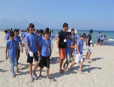 Aydın Gençlik Hizmetleri ve Spor İl Müdürlüğü tarafından düzenlenen gençlik kampına katılan gençler, 2 kilometrelik sahil şeridini temizledi.