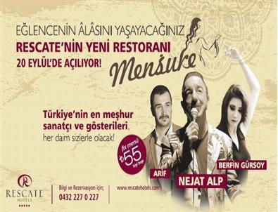 Edremit ilçesinde bulunan ve Van Gölü’nün eşsiz manzarası karşısında konuklarını ağırlayan Rescate Otel, hizmetlerine bir yenisini daha ekliyor. Rescate Otel’in yeni mekanı olan ve 20 Eylül’de açılacak Menşure Restaurant&Bar için tüm hazırlıklar en ince detayına kadar tamamlandı. Konuk sanatçı olarak Nejat Alp’ın katılacağı açılışta; Arif, Berfin Gürsoy ve DJ Erdoğan da sahne alacak. Fix menünün sadece 55 TL olacağı Menşure Restoran&Bar’da; her çarşamba fasıl, cuma ve cumartesi günleri ise Arif, Berfin Gürsoy ve DJ Erdoğan sahne alacak. Her ay farklı konuk sanatçının hayranlarıyla buluşacağı Menşure Restoran&Bar’ın açılışına herkesin davetli olduğu bildirildi.