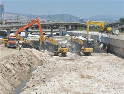İZSU Genel Müdürlüğü, kıyısında Homeros’un yaşadığı Meles deresinde dönem dönem ortaya çıkan kokunun kalıcı olarak giderilmesi için balçık zemini betonladı.