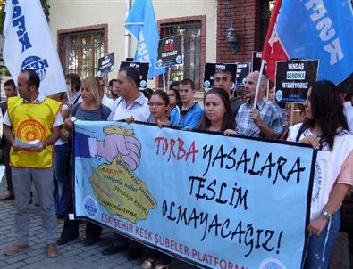 KESK Şubeler Platfotmu üyeleri Sağlık İl Müdürlüğü önünde bir araya gelerek Türkiye Büyük Millet Meclisi'nde gündeme gelen Torba Yasayı protesto ettiler.