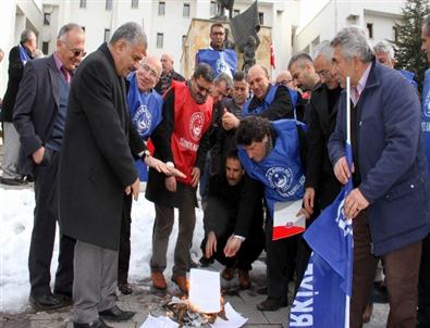 Çetin’in açıklamasının ardından eyleme katılan sendika yöneticileri ve memurlar maaş bordrolarını yaktı.
