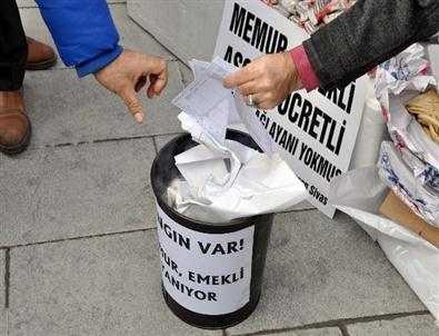 Sivas’ta Türkiye Kamu-Sen üyeleri, hükümetin verdiği zamma tepki göstererek, maaş bordrolarını yaktı.