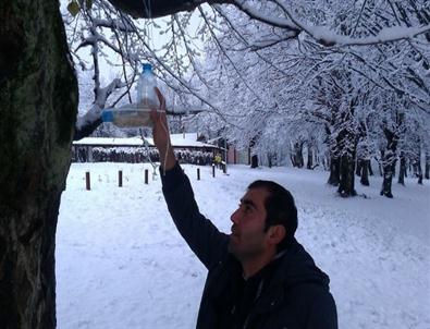 Kentte yoğun kar yağışı nedeniyle, Bartın Gençlik Merkezi tarafından doğada yiyecek bulmakta zorlanan kuşlar için pet şişelerden yemlik yapılarak, ağaçlara asıldı.