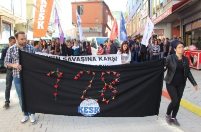 KESK Şırnak Şubesi ve Şırnak Belediyesi önünden 2 koldan Cumhuriyet Meydanı’na yürüyerek gelen STK temsilcileri sloganlar atıp siyah bez üzerine kırmızı karanfillerle 128 rakamının yazıldığı pankartı taşıdı. STK’lar adına açıklamada bulunan Eğitim-Sen Şırnak Şube Başkanı Serhat Uğur, ülkenin savaş ve barış isteyenler olarak ikiye bölündüğünü söyledi.