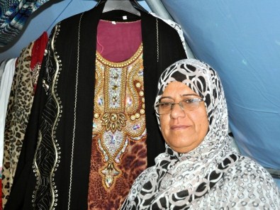 Suriye’deki yaptığı işini çadır kentte sürdürebildiğini kaydeden Salih, "Gördüğünüz gibi ben Suriye’de şu elbiseleri tasarlıyor ve dikiyordum.Yanımda altı bayan çalışan vardı. Deyrezzor kentinde siparişlere cevap veremeyecek kadar yoğun bir iş tempom vardı.Yaklaşık olarak kırk yıldır bu işi yapmaktayım. Suriye’de işler zora girince ve savaş ortam bizleri sıkıştırınca eşim ve çocuklarımla beraber Türkiye’ye sığındık.Şimdi Türkiye’deyiz. Çok şukür dikiş atölyesinde hem dikiş dikiyoruz ,hemde mesleğimizin inceliklerini yanımızdaki yirmi bayana öğretiyoruz.Çok şukür bu ortamda çok mutluyuz" dedi.