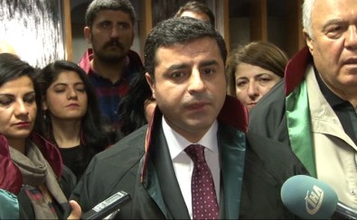 Geçtiğimiz hafta Ankara’da yaşanan terör saldırısının ardından adliye içerisinde Cumhurbaşkanı aleyhine slogan atarak eylem yapan avukatlar hakkında “Cumhurbaşkanına hakaret” ve “Toplantı ve Gösteri Yürüyüşleri Kanunu’na muhalefet” suçlarından soruşturma başlatılmıştı. Savcılığın eyleme katılan avukatları kamera kayıtlarını inceleyerek tespit edeceği belirtilmişti. Demirtaş, avukatlar hakkında başlatılan bu soruşturmayı eleştirerek, “Yakın zamanda Ankara katliamının protesto edilmesi için avukatların adliyede yaptığı bir anmayı, protestoyu savcılık maalesef ki soruşturma gerekçesine dönüştürdü. Avukatların kimliğini tespit ediyorlar. Kameralarda görünmeyebilir ama ben de oradaydım. O gün oradaydım. Kendimi ihbar ediyorum. Burada İstanbul Adliyesi’ndeydim. Birlikte protesto ettik, birlikte bağırdık. Binlerce avukat aynı şeyi yaptı. Bütün avukat arkadaşlarımıza uğradıkları haksızlıklardan dolayı bir kez daha geçmiş olsun dileklerimizi, dayanışma duygularımızı iletiyoruz” dedi.
